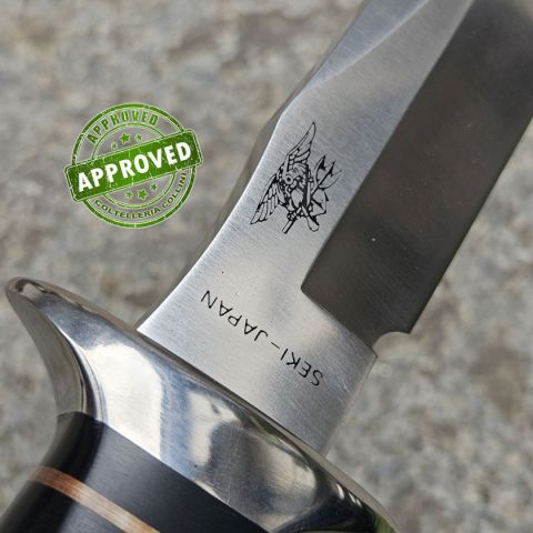 COLTELLO RITIRATO DA COLLEZIONE PRIVATA* Provenienza: Ritirato da un privato, precedentemente acquistato* Condizioni: Pari al nuovo, NOS (new old stock), mai utilizzato o estratto dalla sua scatola originale* Reperibile in commercio: Fuori produzione* Affilatura: Di fabbrica* Segni su lama: Nessuno* Segni su impugnatura: Nessuno* Scatola: Presente* Fodero: Presente e perfetto* Manuali, Certificati e Garanzie: -* Controllato e Certificato dal nostro laboratorio interno Nato nel 1986 come secondo modello ufficiale della neonata SOG Specialty Knives, il S2 Trident non è un semplice coltello, ma un ponte tra passato e presente. Disegnato in onore dei Navy SEALs e delle unità speciali che operarono in Vietnam, trae ispirazione diretta dai leggendari coltelli MACV‑SOG degli anni ’60, strumenti “sterilizzati” e letali usati nelle missioni più segrete del conflitto. Prodotto nella fase d’oro dell’azienda a Seki, Giappone, il Trident unisce linee eleganti e funzionalità da combattimento: una la