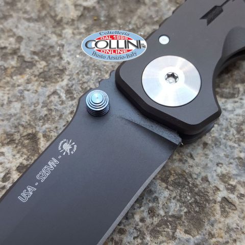 Modello vincitore del Blade Show 2016 come "American Made Knife of the Year" Dopo oltre 40 anni di servizio nella US Army Special Forces, Curtis Iovito e Mark Carey fondano nella North Carolina la Spartan Blades LLC. Curtis, che già da anni progettava e disegnava coltelli per gli amici nelle forze speciali e Mark, che da sempre si occupava di attrezzature militari e tattiche quando lavorava nei "Berretti Verdi", decidono di unire le loro competenze e la loro passione con l'obiettivo di costruire coltelli innovativi e funzionali utilizzando materiali di altissimo livello qualitativo e interamente fatti negli Stati Uniti. Destinazione d'uso: Collezione / Sportivo Tipo di produzione: Semi-Industriale Paese di produzione: USA Lama: in acciaio inox CPM-S35VN Trattamento lama: Black PVD Manicatura: titanio 6AL-4V Black PVD Lunghezza lama: 100mm. Spessore lama: 4mm. Lunghezza chiuso: 125mm Lunghezza totale: 225mm.Peso: 166g. Chiusura: FrameLock Clip: in titanio anodizzato Confezione: s