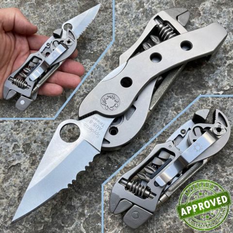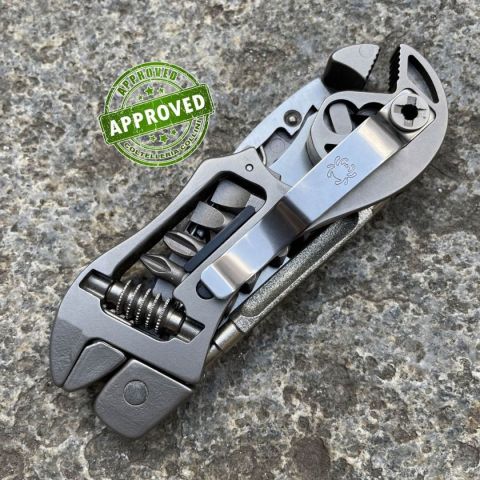 COLTELLO RITIRATO DA COLLEZIONE PRIVATA* Provenienza: Ritirato da un privato, precedentemente acquistato* Condizioni: Modello del 2007 pari al nuovo, meccanicamente perfetto, non mostra segni di uso o di usura* Reperibile in commercio: Fuori produzione* Affilatura: Di fabbrica* Segni su lama: Nessuno* Segni su impugnatura: Nessuno* Scatola: Presente e completa* Fodero: Presente* Manuali, Certificati e Garanzie: Presenti* Controllato e Certificato dal nostro laboratorio interno Il T01 SpydeRench segna il ritorno di un classico rivoluzionario nel mondo dei multi-tool. Progettato da un ingegnere aerospaziale in collaborazione con il reparto R&D di Spyderco, questo strumento compatto unisce ingegneria di precisione e funzionalità avanzate. Realizzato in acciaio inox 17-4ph resistente alla corrosione, integra una vera lama Spyderco in AUS-8 a apertura/chiusura con una sola mano, clip da tasca, una chiave a rullino regolabile fino a 9/16" e una pinza a due posizioni dal comfort superiore