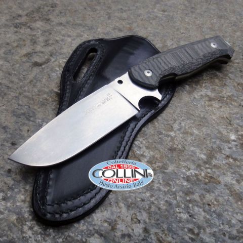 Pensato per gli amanti dell’outdoor e della lavorazione del legno, il Viper Borr Micarta è un coltello fisso che unisce design ergonomico e materiali di alta qualità. Progettato dal celebre designer Jesper Voxnaes, questo coltello è perfetto per il bushcraft, la caccia e le attività all’aperto più impegnative. La lama in acciaio D2 garantisce un’eccezionale resistenza e capacità di taglio, mentre l’impugnatura in Micarta offre una presa salda e sicura in ogni condizione. Un connubio di eleganza e funzionalità, realizzato con la precisione e l’artigianalità che contraddistinguono i prodotti Viper Tecnocut. Destinazione d'uso: Allround UtilityTipo di produzione: IndustrialePaese di produzione: ItaliaLama: In acciaio al carbonio D2 58/59HRCFinitura lama: StonewashedManicatura: Black Canvas MicartaLunghezza lama: 125mm.Spessore lama: 4.8mm.Lunghezza totale: 260mm.Bilanciatura: arretrata di 1cmPeso: 260g.Fodero: in cuoio nero idroformato, con doppio passante per cinturaConfezione: sc
