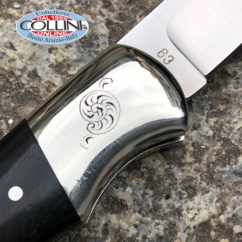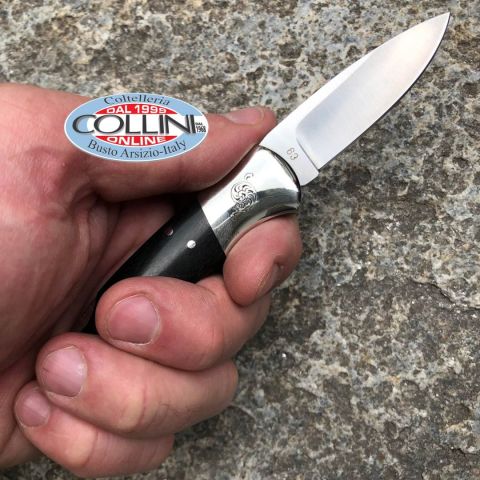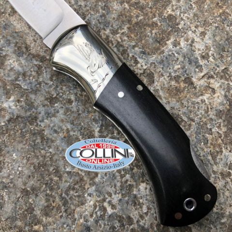 Destinazione d'uso: Sportivo / CollezioneTipo di produzione: IndustrialeProduzione Lama: ItaliaLama: In acciaio inox 420 55/56HRCTrattamento Lama: -Manicatura: EbanoLunghezza lama: 55mm.Spessore lama: 3mm.Lunghezza chiuso: 80mm.Lunghezza totale: 137mm.Spessore da chiuso: 16mm.Bilanciatura: -Peso: 70g.Chiusura: Back LockClip: -Fodero: -Confezione: scatola in legnoNote: Edizione Limitata con incisione a mano del maestro incisore Aldo Rizzini