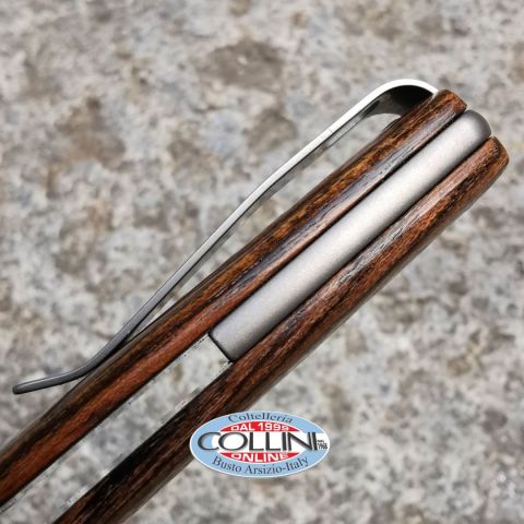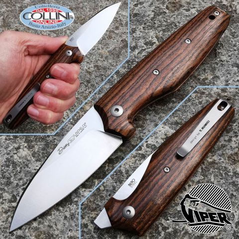 Destinazione d'uso: Sportivo/EDC Tipo di produzione: IndustrialeProduzione Lama: ItaliaLama: In acciaio inox N690Co 57/59HRCTrattamento Lama: SatinataManicatura: Legno di Bocote con liners interni in 420C e distanziale in titanio GR2Lunghezza lama: 73mm.Spessore lama: 3mm.Lunghezza chiuso: 115mm.Lunghezza totale: 182mm.Peso: 90g.Chiusura: sistema Action Stopper brevettatoClip: Acciaio Inox satinatoConfezione: scatola in cartone con loghi ViperNote: Design by Tommaso Rumici
