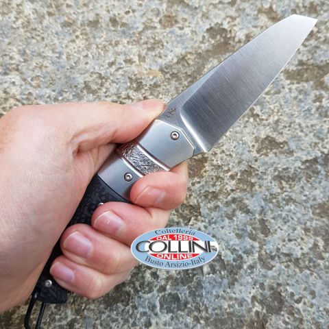 Destinazione d'uso: Sportivo/EDC Tipo di produzione: Industriale Paese di produzione: Maniago - Italia Lama: in acciaio inox M390 60/61HRC Trattamento lama: Satinatura Impugnatura: Fibra di Carbonio con testine e spaziatore in Titanio GR2 Lunghezza lama: 76mm. Spessore lama: 4mm. Lunghezza chiuso: 102mm. Lunghezza totale: 179mm. Spessore da chiuso: 16mm.Peso: 135g.Washers: in acciaio e bronzo, con cuscinetti a sfera Chiusura: Liner Lock in acciaio inox 1.4116 Clip: - Fodero: - Confezione: Scatola di cartone con loghi Viper Knives Note: Design by Fabrizio Silvestrelli