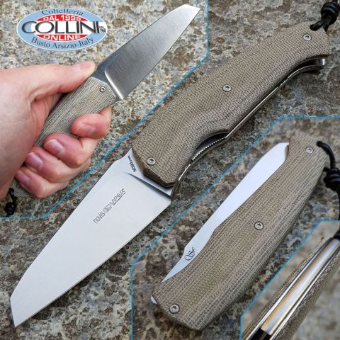 Destinazione d'uso: Sportivo/EDC Tipo di produzione: Industriale Paese di produzione: Maniago - Italia Lama: in acciaio inox M390 60/61HRC Trattamento lama: Satinatura Impugnatura: Micarta Lunghezza lama: 76mm. Spessore lama: 4mm. Lunghezza chiuso: 102mm. Lunghezza totale: 179mm. Spessore da chiuso: 16mm.Peso: 115g.Washers: in acciaio e bronzo, con cuscinetti a sfera Chiusura: Liner Lock in acciaio inox 1.4116 Clip: - Fodero: - Confezione: Scatola di cartone con loghi Viper Knives Note: Design by Fabrizio Silvestrelli