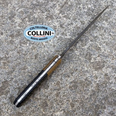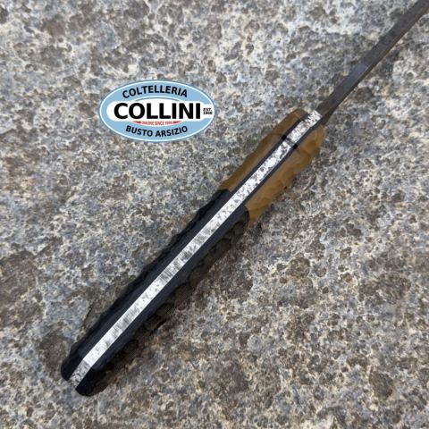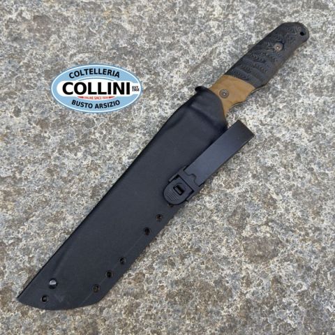 Il Freedom XL non è un semplice coltello, ma un frammento di libertà forgiato a mano in Italia. Imponente nelle forme e unico nella sua essenza, nasce dall’incontro tra forza e raffinatezza: la lama in acciaio D2 con finitura Marble racconta la potenza della materia, mentre il manico in G10 Tan e Micarta nera custodisce la solidità della tradizione artigiana. Con i suoi 392 mm di lunghezza, la sua presenza si fa sentire, bilanciata da un’anima arretrata che invita al controllo e alla precisione. Protetto da un fodero in Kydex pensato per accompagnarlo ovunque, il Freedom XL vive al di fuori del tempo e del catalogo: solo due esemplari al mondo, ciascuno con una propria anima, destinati a chi cerca non un attrezzo, ma un compagno raro e irripetibile. Tipo di produzione: ArtigianalePaese di produzione: ItaliaLama: in acciaio D2 a 59/60HRCFinitura lama: MarbleManicatura: G10 Tan + Black MicartaLunghezza lama: 233mm.Spessore lama: 5mm.Lunghezza totale: 392mm.Bilanciatura: arretrataPeso: 58