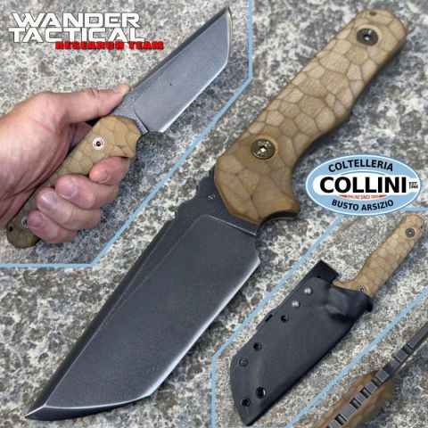 Il Wander Tactical Lynx Tanto è un coltello custom artigianale pensato per gli operatori più esigenti e per gli appassionati che cercano un connubio tra robustezza, precisione e affidabilità. Realizzato interamente in Italia, questo modello utilizza una lama in acciaio D2 temprata a 59/60HRC, capace di garantire una tenuta del filo superiore e un’eccellente resistenza all’usura. Lo spessore di ben 5mm e la lunghezza di 105mm conferiscono alla lama una presenza imponente, ulteriormente valorizzata dalla finitura Raw che ne esalta l’aspetto grezzo e professionale. L’impugnatura in G10 color coyote offre una presa salda e sicura anche in condizioni operative estreme, mentre il bilanciamento arretrato assicura controllo e precisione nelle manovre. Il coltello è dotato di fodero in Kydex termoformato con sistema di fissaggio, per un porto sicuro e versatile. Ogni pezzo è unico: la lavorazione artigianale rende ogni Lynx Tanto diverso, con lievi variazioni nelle finiture, nei colori e nei ma