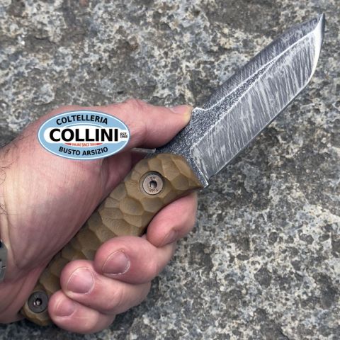 Coltello artigianale italiano pensato per un utilizzo versatile e quotidiano. La lama full tang in acciaio D2 con finitura Stone Edge che garantisce affidabilità e carattere, mentre il manico in G10 offre una presa sicura in ogni condizione. Robusto, ben bilanciato e compatto, è accompagnato da fodero in Kydex compatibile M.O.L.L.E. e certificato di autenticità. Un pezzo unico, realizzato a mano con cura e attenzione ai dettagli. Impiego: Light Utility / All Round Tipo di produzione: ArtigianalePaese di produzione: ItaliaLama: full tang, in acciaio D2 a 59/61HRCFinitura lama: RawManicatura: G10Lunghezza lama: 100mm.Spessore lama: 5.5mm.Lunghezza totale: 203mm.Bilanciatura: arretrataPeso: 225g.Fodero: in Kydex, termoformato, con attacco da cintura compatibile M.O.L.L.E.Confezione: accompagnato da certificato di garanzia e autenticitàNote: coltello realizzato artigianalmente