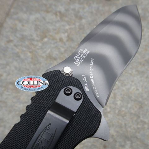 Zero Tolerance - Strider Onion Folder Tiger Stripe G10 - ZT350TS - coltelloDestinazione d'uso: Tattico/MilitareTipo di produzione: IndustrialeProduzione Lama: USALama: In acciaio CPM-S30VTrattamento Lama: Tungsten DLC CoatingManicatura: G-10 con finitura 3DLunghezza lama: 90mm.Spessore lama: 3mm.Lunghezza chiuso: 115mm.Lunghezza totale: 195mm.Spessore da chiuso: 13mm.Bilanciatura: -Peso: 162g.Chiusura: Liner LockClip: Amovibile, Multiposizione, in acciaio inoxFodero: -Confezione: scatola in cartone con loghi Zero ToleranceNote: Design by Mick Strider and Ken Onion - Sistema di apertura SpeedSafe