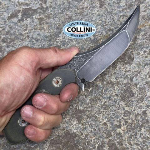Nato dalla collaborazione con Alessandro Padovani, istruttore internazionale di arti marziali, difesa personale e fondatore di Safer Faster Defense, il Wander Tactical Bad Medicine è stato realizzato in una tiratura limitata di soli 12 esemplari. Questo coltello incarna l’esperienza di una vita dedicata al combattimento reale, alla formazione con armi da fuoco e alla difesa moderna, traducendo anni di ricerca e insegnamento in una lama concepita per l’efficienza, la robustezza e l’affidabilità assoluta in contesti critici. Destinazione d'uso: Tattico / CQB Tipo di produzione: ArtigianalePaese di produzione: ItaliaLama: in acciaio D2 a 59/61HRCFinitura lama: AcidManicatura: "F" Green MicartaLunghezza lama: 120mm.Spessore lama: 5mm.Lunghezza totale: 223mm.Bilanciatura: arretrataPeso: 204g.Fodero: in kydex termoformato, con belt loop compatibile M.O.L.L.E.Confezione: accompagnato certificato di garanzia ed autenticità,Note: Coltello interamente realizzato a mano, in ogni sua