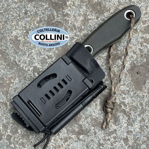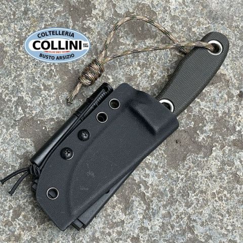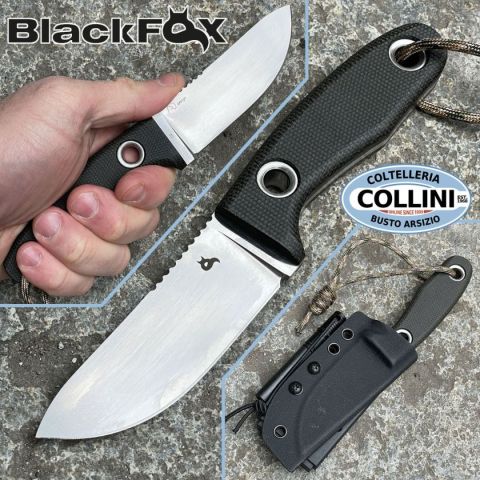 Destinazione d'uso: Bushcraft / Outdoor Tipo di produzione: IndustrialePaese di produzione: ChinaLama: full tang in acciaio al carbonio D2 temprato a 58/60HRCTrattamento lama: SatinaturaManicatura: MicartaLunghezza lama: 90mm.Spessore lama: 4mm.Lunghezza totale: 190mm.Peso: 165g.Fodero: in Kydex, con attacco di tipo Tek-LokConfezione: scatola in cartone con loghi BlackFoxNote: Acciarino per accendere il fuoco incluso, da inserire nel fodero - Design by Alfredo Doricchi