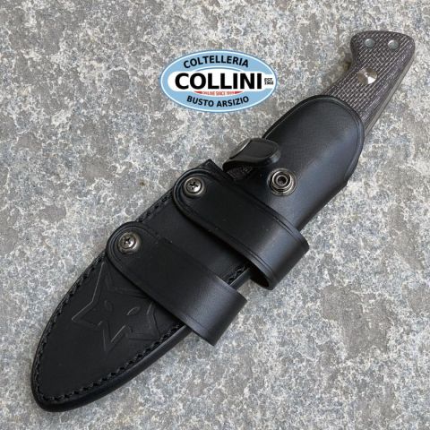 Destinazione d'uso: Utility / Tattico / OutdoorTipo di produzione: IndustrialePaese di produzione: ItaliaLama: In acciaio inox Niolox 59/61HRC con finitura Black IdrogliderManicatura: Bison MicartaLunghezza lama: 110mm.Spessore lama: 5mm.Lunghezza totale: 230mm.Bilanciatura: avanzata ad 1cmPeso: 235g.Fodero: cuoioConfezione: scatola in cartone con loghi FoxNote: -