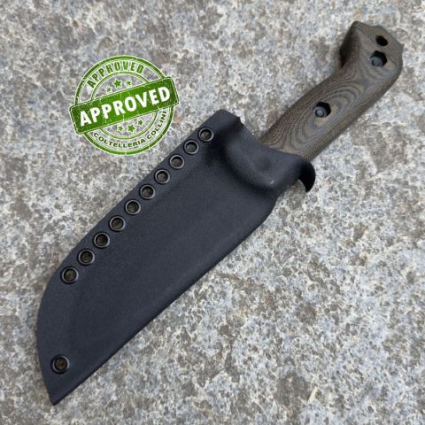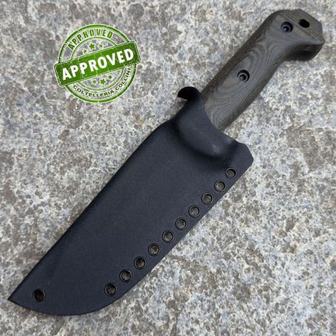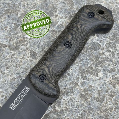 COLTELLO PROVENIENTE DA UNA COLLEZIONE PRIVATA* Tipologia: Coltello precedentemente acquistato e ritirato da una collezione privata* Condizioni: In condizioni pari al nuovo* Reperibile in commercio: Di difficile reperibilità* Affilatura: Di fabbric* Segni su lama: -* Segni su impugnatura: -* Scatola: Originale* Fodero: in ottime condizioni, completo* Manuali, Certificati e Garanzie: Ka- BarControllato e Certificato dal nostro laboratorio interno Il KA‑BAR BK72 rappresenta l’evoluzione definitiva di un’icona nel mondo dei coltelli da sopravvivenza: erede del rinomato Becker BK2/BK22, ne conserva la solidità e l’efficacia, ma eleva le prestazioni grazie all’utilizzo dell’acciaio CPM S35VN. Robusto e affidabile, con una lama spessa 6,35 mm a tutta piena, garantisce resistenza estrema e maneggevolezza ottimale. Il manico in micarta nera assicura una presa salda in qualsiasi condizione, mentre le finiture disponibili — stonewashed o rivestimento DLC nero — aggiungono un tocco estetico