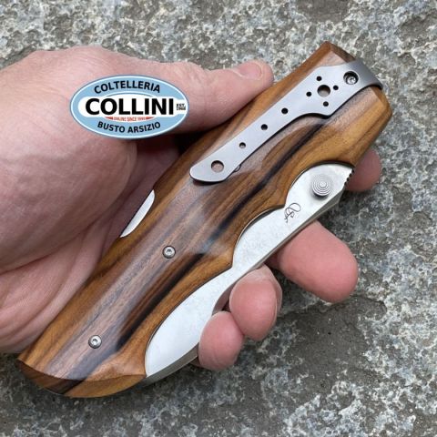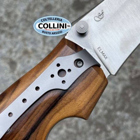 Destinazione d'uso: Sportivo Tipo di produzione: Industriale Produzione Lama: Italia Lama: in acciaio Uddeholm ELMAX SuperClean, HRC 59/61Trattamento Lama: SatinatoManicatura: Legno di Pau SantoLunghezza lama: 108mm. Spessore lama: 4.2mm. Lunghezza chiuso: 143mm. Lunghezza totale: 253mm. Spessore da chiuso: 19mm. Bilanciatura: - Peso: 280g. Chiusura: Back Lock con due molle a filo Clip:Acciaio AISI420 temperato con trattamento stonewashed Fodero: - Confezione: Scatola di cartone con loghi Viper Note: Design by Fabrizio "Sylvester" Silvestrelli