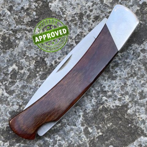 COLTELLO RITIRATO DA COLLEZIONE PRIVATA* Provenienza: Ritirato da un privato, precedentemente acquistato* Condizioni: coltello del 1992 in perfette condizioni meccaniche ed ottime condizioni estetiche, mostra unicamente qualche piccolo graffietto sulle testine in acciaio* Reperibile in commercio: Fuori produzione e di difficile reperibilita', modello commercializzato negli anni '90* Affilatura: Di fabbrica* Segni su lama: nessuno* Segni su impugnatura: piccolissimi graffietti / hairlines sulle testine in acciaio* Scatola: -* Fodero: -* Manuali, Certificati e Garanzie: -* Controllato e Certificato dal nostro laboratorio interno Il Buck 551, spesso conosciuto come “King Charles II”, è un coltello pieghevole vintage prodotto negli Stati Uniti tra l’inizio e la metà degli anni ’90 in quantità limitate. Apprezzato da collezionisti e appassionati di coltelli storici americani, rappresenta una variante più compatta rispetto ad altri modelli Buck dello stes