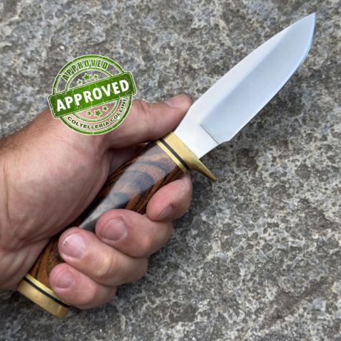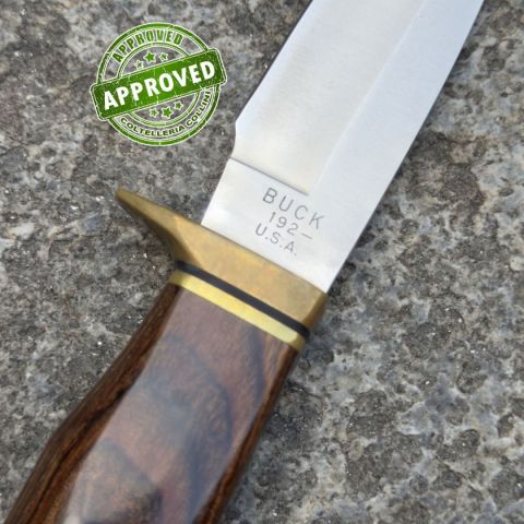 COLTELLO PROVENIENTE DA UNA COLLEZIONE PRIVATA* Tipologia: Coltello precedentemente acquistato e ritirato da una collezione privata* Condizioni: In ottime condizioni, presenta un graffio di circa 2,5 cm sulla lama* Reperibile in commercio: Di difficile reperibilità* Affilatura: Di fabbrica, migliorabile* Segni su lama: presenta un graffio di circa 2,5 cm sulla lama* Segni su impugnatura: -* Scatola: -* Fodero: in ottime condizioni, completo* Manuali, Certificati e Garanzie: -Controllato e Certificato dal nostro laboratorio interno Il Buck 192 Vanguard è un coltello da caccia di altissima qualità, realizzato negli Stati Uniti e pensato per offrire prestazioni eccellenti in ogni situazione outdoor. L’impugnatura ergonomica in legno pregiato con finiture in ottone conferisce al coltello un aspetto classico e robusto, mentre la lama drop point in acciaio inox 420HC garantisce un taglio affidabile e duraturo nel tempo.Produzione 192 - con trattino: questo esemplare riporta la scritta “192-”