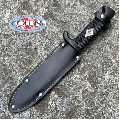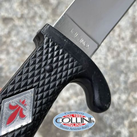 Tipo di produzione: IndustrialeProduzione Lama: ItaliaLama: In acciaio 440ATrattamento Lama: lama lucidaManicatura: materiale plasticoLunghezza lama: 120mm.Spessore lama: 2.5mm.Lunghezza totale: 240mm.Peso: 84g.Fodero: in pelleNote: -