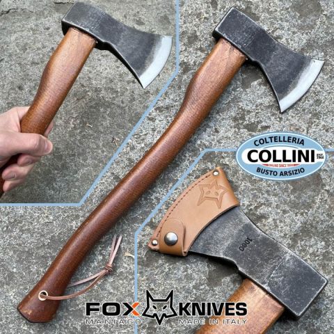 Yankee & Sekira - un'accetta e un'ascia. La differenza sostanziale tra le due? La prima può essere utilizzata con una sola mano mentre la seconda è costruita per essere usata con due mani garantendo il massimo della potenza. Le accette e le asce sono utensili eccellenti e facilmente trasportabili, grazie alle loro dimensioni ridotte, che possono essere utilizzate in tanti modi: tagliare piccoli alberi, sezionare il legno ed incidere e, in caso estremo, come difesa personale.I due nuovi modelli Fox hanno le lame forgiate in acciaio C45, il manico in noce americano e sono accompagnate da foderi in cuoio realizzati in italia. Destinazione d'uso: Escursionistico / SportivoTipo di produzione: IndustrialePaese di produzione: ItaliaLama: in acciaio al carbonio 1045 / C45Trattamento lama: BlackwashedManicatura: Legno di Hickory (Noce Americano)Lunghezza lama: 11cm.Spessore lama: 3.75cm.Lunghezza totale: 60cm.Peso: 1520g.Fodero: coprilama in cuoio, realizzato in italiaConfezione: scatola di
