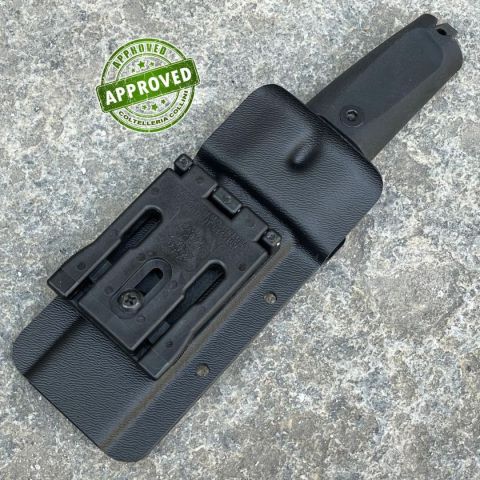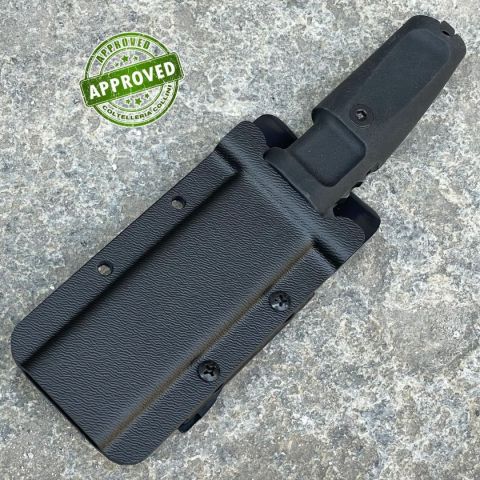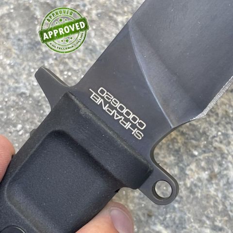 COLTELLO RITIRATO DA COLLEZIONE PRIVATA* Tipologia: Precedentemente Acquistato, prima serie del 2004* Condizioni: Perfetto, pari al nuovo* Reperibile in commercio Fuori produzione, sostituito dalle nuove versioni* Affilatura: Di fabbrica, perfetta* Segni su lama: Nessuno* Segni su impugnatura: Nessuno* Scatola: Presente e perfetta* Fodero: Presente e perfetto* Manuali, Certificati e Garanzie: -* Controllato e Certificato dal nostro laboratorio interno Destinazione d'uso: militare/tatticoTipo di produzione: industrialePaese di produzione: ItaliaLama: in acciaio inox N690Co 58/60HRCFinitura lama: brunitura MIL-C 13924Impugnatura: ForpreneLunghezza lama: 110mm.Spessore lama: 6.3mm.Lunghezza chiuso: 142mm.Lunghezza totale: 210mm.Peso: 210g.Fodero: Fodero termoplastico con aggancio Tek-LokNote: Esemplare prima serie 2004, con viteria esagonale, doppio ramo di guardia e fodero termoplastico piatto fornito con scatola originale tutto in condizioni di pari al nuovo.