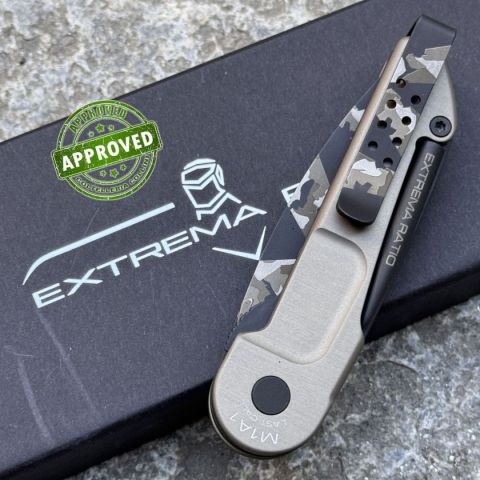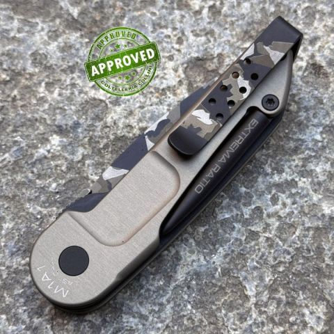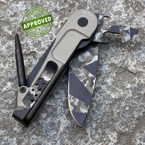 COLTELLO RITIRATO DA COLLEZIONE PRIVATA* Tipologia: Precedentemente Acquistato* Condizioni: in condizioni pari al nuovo* Reperibile in commercio Esemplare in tiratura limitata 130 pezzi* Affilatura: Di fabbrica* Segni su lama: No* Segni su impugnatura: No* Scatola: Presente* Fodero: -* Manuali, Certificati e Garanzie: Presenti* Controllato e Certificato dal nostro laboratorio interno M1A1 è la personale interpretazione che Extrema Ratio ha realizzato per rendere omaggio allo storico chiudibile utilizzato dall’Esercito Italiano. Il coltello originale, durante la seconda guerra mondiale, faceva parte della dotazione dell’Esercito Britannico. Al termine del conflitto, grazie al piano per la ripresa europea “Piano Marshall”, l’Esercito Italiano ricevette alcuni armamenti e strumentazioni in dotazione agli alleati durante la guerra tra i quali figurava anche questo strumento multifunzionale. In seguito, fu poi riprodotto in Italia in tre ver