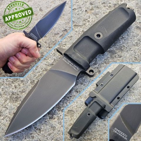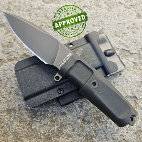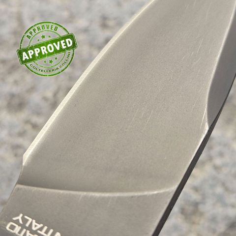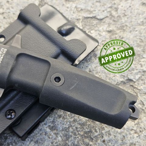 COLTELLO RITIRATO DA COLLEZIONE PRIVATA* Tipologia: Precedentemente acquistato ed utilizzato, ritirato da una collezione privata* Condizioni: In ottime condizioni meccaniche ed in buone condizioni estetiche, con piccole abrasioni sulla finitura superficiale della lama e sull'impugnatura che non ne compromettono in nessun modo l'utilizzo concreto* Reperibile in commercio Fuori produzione, sostituito dalle nuove varianti (un solo ramo di guardia / differente fodero)* Affilatura: Di fabbrica* Segni su lama: piccole abrasioni sulla finitura superficiale della lama* Segni su impugnatura: piccole abrasioni sull'impugnatura* Scatola: Assente* Fodero: Presente e completo* Manuali, Certificati e Garanzie: Assenti* Controllato e Certificato dal nostro laboratorio interno Destinazione d'uso: Tattico / MilitareTipo di produzione: industrialePaese di produzione: ItaliaLama: in acciaio inox N690Co 58/60HRCFinitura lama: brunitura MIL-C 13924Impugnatura: ForpreneLunghezza lama: 110mm.Spessore l