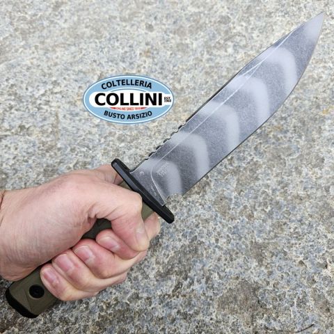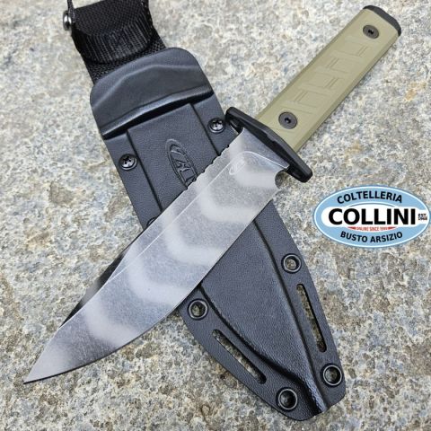 Destinazione d'uso: Tattico / SportivoTipo di produzione: IndustrialePaese di produzione: USALama: full tang in acciaio al carbonio CPM-3VTrattamento lama: Verniciatura tigerstripe e trattamento protettivo CerakoteManicatura: G10 OD Green con guardia passante in acciaio inoxLunghezza lama: 152mm.Spessore lama: 4.8mm.Lunghezza totale: 272mm.Spessore impugnatura: 17.8mm.Peso: 292g.Fodero: in kydex, con sistema di aggancio alla cintura in Nylon, amovibileConfezione: scatola in cartone con loghi Zero ToleranceNote: -