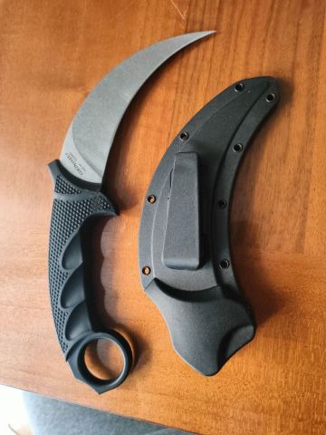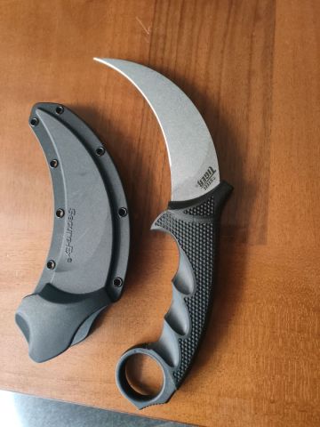 Karambit Cold Steel (Steel Tiger), perfetto come nuovo. Il coltello si trova fisicamente in Liguria ma previo accordi telefonici programmati si potrebbe vendere con consegna a mano anche in zona Toscana, Umbria, Lazio e Campania dato che ultimamente per motivi personali viaggio spesso in auto tra Liguria e Campania. Disponibile nel caso anche a spedizioni.