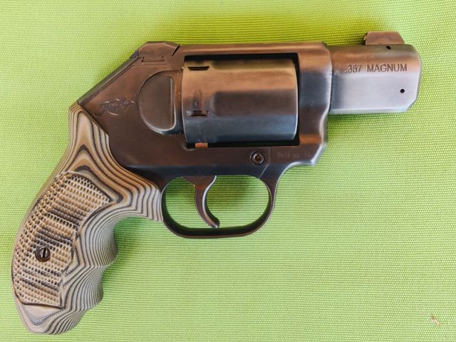 Kimber K6S .357 Magnum, canna da 2 ", cane interno, 6 colpi (accetta .38 e .38 special), mire al trizio, pari al nuovo. In confezione originale con accessori come da foto + speedloader. Mai sparato. Regalo fondina originale senza segni di usura.