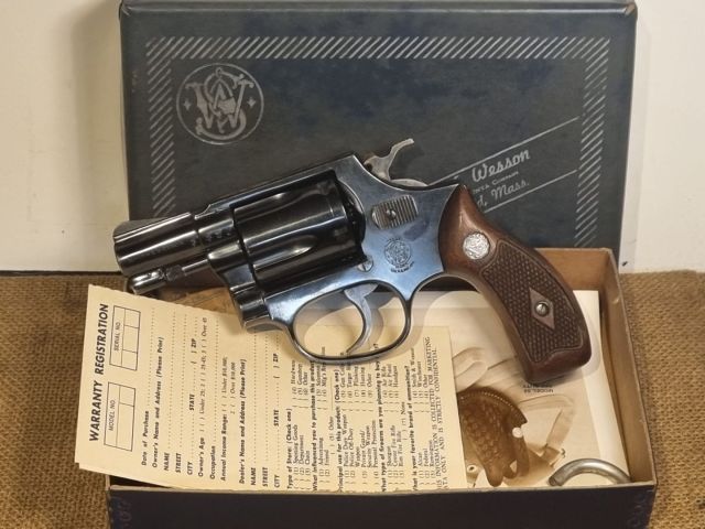 REVOLVER CAL. 38SPL, 1965, 5RD, CANNA SPINATA, TELAIO ACCIAIO. E' UNO DEI PRIMI MOD. 36, PRE SERIE J, CON SVINCOLO TAMBURO PRIMO TIPO E GUANCETTE DIAMOND. SEMINUOVO SENZA SEGNI NE' GRAFFI NELLA SUA SCATOLA D'EPOCA CON DOCUMENTI E ACCESSORI. ARMA NON FACILE IN QUESTE CONDIZIONI.
