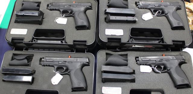 Pistola semiautomatica Smith & Wesson calibro 9x21 modello M&P 9. Prezzo di 300,00€ al pezzo. Per info: Smith & Wesson M&P - Wikipedia