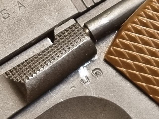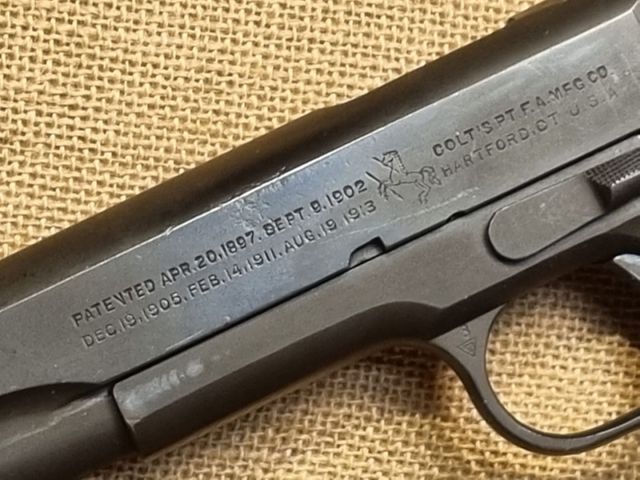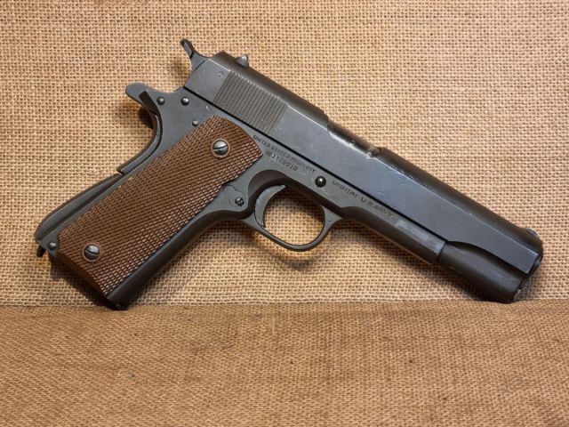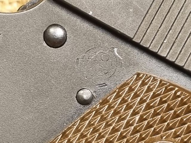 PISTOLA SPORTIVA CAL. 45 ACP, 1943, FUSTO, CANNA E CARRELLO COLT DEL PERIODO, ISPETTORE GHD CORRETTO, GUANCETTE E MINUTERIA CORRETTE. PROBABILE RIARSENALIZZAZIONE EPOCA VIETNAM. OTTIME CONDIZIONI, CANNA PERFETTA. - codice 5844