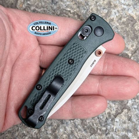 Coltello pieghevole ultraleggero progettato per l’Everyday Carry avanzato e le attività outdoor tecniche, il Benchmade Mini Bugout 533TN‑2601 combina materiali di prim’ordine e geometrie funzionali in un profilo compatto. Con lama in acciaio in polveri ad alte prestazioni ELMAX trattata con finitura Tan Cerakote, questo piccolo folder offre eccellente resistenza alla corrosione e tenuta del filo pur mantenendo un peso piuma. Il manico in Grivory Taiga Green assicura comfort e controllo, mentre il meccanismo AXIS Lock ambidestro garantisce apertura e bloccaggio fluidi e sicuri per un utilizzo quotidiano affidabile su vasta gamma di compiti. Destinazione d’uso: Coltello pieghevole Everyday Carry tecnico e outdoor, utilizzo generico avanzato, escursionismo, EDC urbano Tipo di produzione: Blue Class premium (Benchmade) Paese di produzione: Stati Uniti d’America Lama: ELMAX™ acciaio in polvere ad alte prestazioni Finitura lama: Tan Cerakote resistente alla corrosione e usura Geo