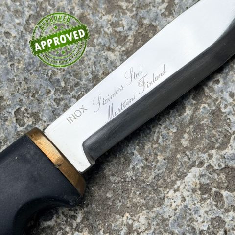 COLTELLO RITIRATO DA COLLEZIONE PRIVATA* Provenienza: Ritirato da un privato, precedentemente acquistato* Condizioni: Pari al nuovo, mai utilizzato* Reperibile in commercio: Fuori produzione* Affilatura: Di fabbrica* Segni su lama: Nessuno* Segni su impugnatura: Nessuno* Scatola: /* Fodero: Presente* Manuali, Certificati e Garanzie: /* Controllato e Certificato dal nostro laboratorio interno Destinazione d'uso: Caccia / Light UtilityTipo di produzione: IndustrialePaese di produzione: FinlandiaLama: in acciaio inox Sandvik 12C27Finitura lama: Lucidata a specchioManicatura: Gomma antiscivoloLunghezza lama: 110mm.Spessore lama: 2.5mm.Lunghezza totale: 230mm.Peso: 160g.Fodero: in cuoio, da cinturaConfezione: -Note: coltello precedentemente acquistato, proveniente da una collezione privata