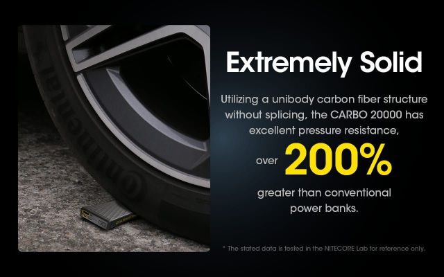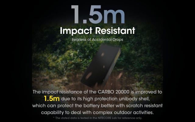 Caratteristiche Chiave:* Powerbank ultraleggero con capienza di 20000 mAh* Telaio e pannelli in fibra di carbonio* Doppi canali di uscita USB-a e USB-C* Output di 20W + Input 18W dalla porta USB-C (PD)* Output di 18W dalla porta USB-A (QC)* Compatibilità con carica PD e QC 3.0* Indicatore di livello di potenza residua a LED* Modalità di ricarica a bassa corrente per elettronica delicata (Es. Smartwatch, Cuffie TWS etc.)* Impermeabilità IPX5* Pesa solo 295.5 grammi; è il 45% più leggero dei tradizionali powerbank con pari capacità e utilizzando una struttura unibody in fibra di carbonio senza giunzioni presenta un'eccellente resistenza alla pressione (superiore al 200% rispetto al modello Nitecore NB20000). Specifiche Tecniche:* Cella: ioni di litio* Capacità: 20.000mAh 3,85V (38,5Wh)* Energia nominale: 13.500mAh 5V (TYP 2A)* Input: USB-C: 5V⎓2.4A / 9V⎓2A* Output: USB-C: 5V⎓3A / 9V⎓2,22A / 12V⎓1,68A* USB-A: 5V⎓3A / 9V⎓2A / 12V⎓1,5A* Doppia porta: 5V⎓3A (MAX)* Dimensioni: 124 mm x 60 mm
