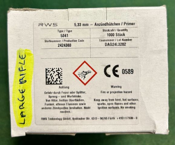 Qualita' RWS incomparabile, sei stai cercando degli inneschi Large Rifle! Prezzo per la scatola da 100 pezzi. SPEDIZIONE IN 48H IN TUTTA ITALIA 12€ INFO ED ORDINI ANCHE WHATSAPP 3920832556